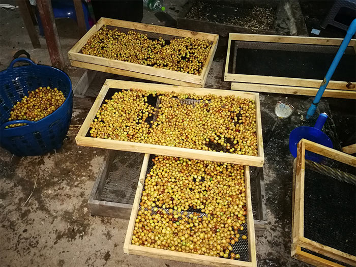 彼の農園はドイ・パンコンに隣接し、収穫されたコーヒーを加工する際はわざわざ「ドイ・パンコン」の加工場まで豆を運び選別~乾燥まで行ってます。現地でも「ドイパンコン・ブランド」のコーヒーは知名度が高く大人気なコーヒーです。タイでは時期を問わず急に雨が降るため、品質が安定しがたく、高品質のナチュラルのコーヒーを作ることが困難な状況です。しかしアソルさんは何度も試行錯誤を繰り返し、通常のナチュラルではなく嫌気性発酵(アナエロビック)を加えて味に複雑さを際立たせ、少量ですが安定して自身が納得のいく「ドイパンコン」より更にもうワンランク上の上質なコーヒーを作り上げました。